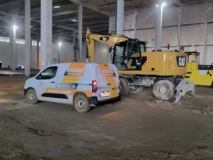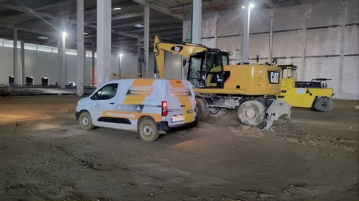 Przypadek 1: Koparka kołowa CAT - precyzja pracy wewnątrz hali